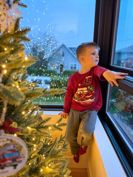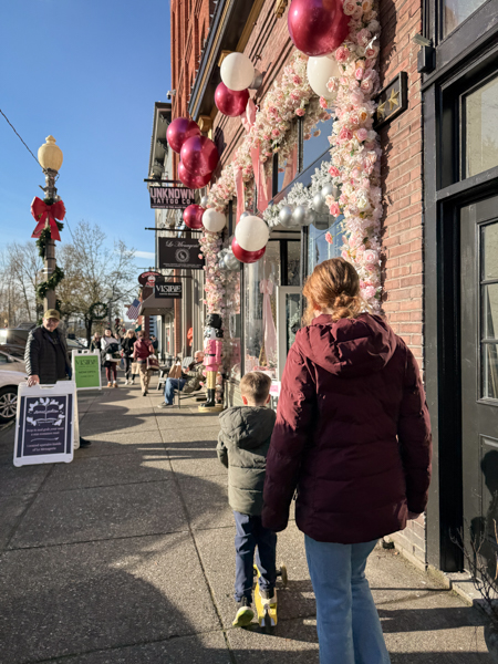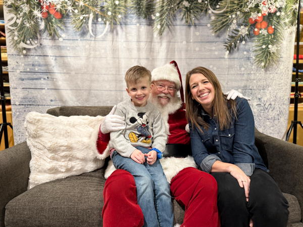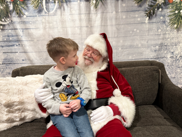 And finally, cue the Christmas sights, like Santa at our neighborhood gift shop. This guy is wonderful – warm and easy-going and there’s never a line to see him. Isaac hopped right into his lap and declared that he would like a Paw Patrol Zuma car for Christmas. Santa took notes (I listened in).