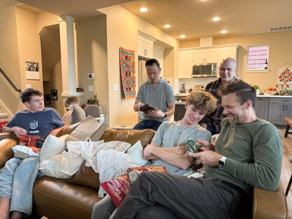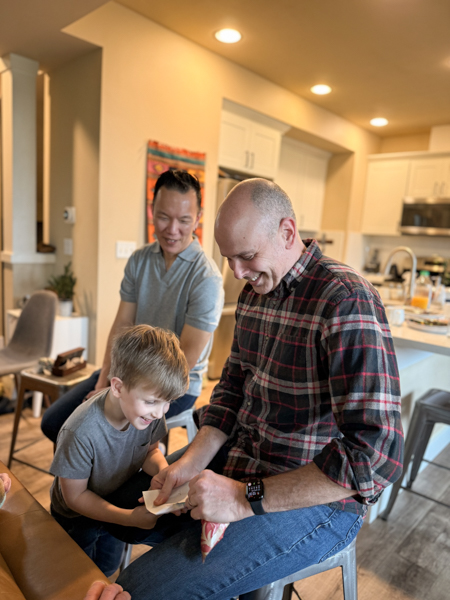 And perhaps the warmest and coziest of all gatherings is our annual brunch with the Rusts and Chens, where we eat and give gifts and remember that sometimes family can be chosen.
