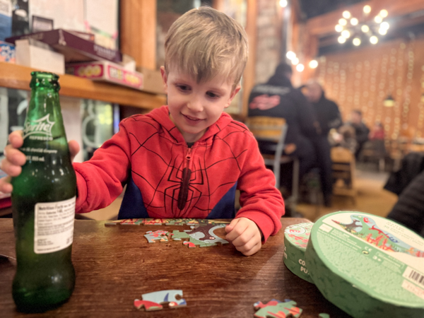 Everything just feels cozier in December…Isaac and I grabbed an extra-special soda and plate of fries at a neighborhood brewpub while Juliette was at her piano lesson one evening.