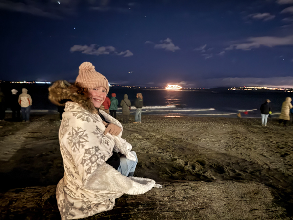 The Christmas Ship with its cast of carolers docked near Alki Beach one evening and Juliette and I headed down to sip our hot chocolate and listen to the songs.