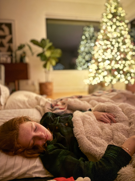 And then the annual Mama-Jules slumber party by the Christmas tree to celebrate the first day of winter break. Two full weeks of no work and no school on the horizon! Peak merry and bright. Christmas is (was!) right around the corner.