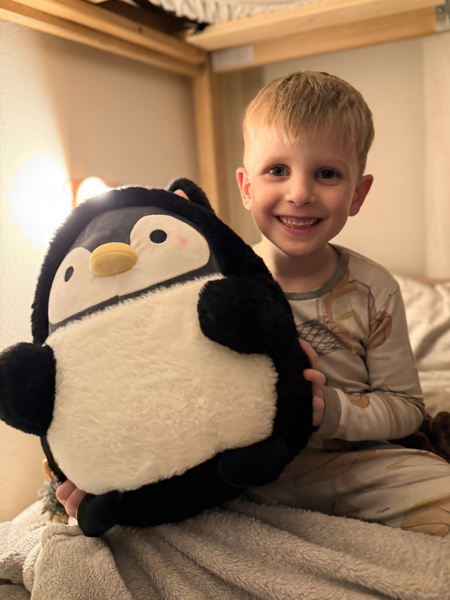 Isaac scored this penguin stuffy that evening – it was almost swiped by one of the older boys, but then Isaac’s lip quivered and his eyes watered and mercy was eventually shown. He has named it Kevin, after Kevin McCallister, and he won’t go anywhere without it.