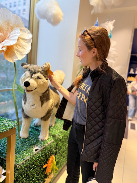 First, though, a quick pop into FAO Schwartz to pick up a little something for Isaac. Juliette was smitten with this giant husky, but we settled on a much more packable Hotwheels Batman car instead.