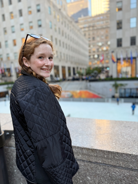 We perched for a minute near the ice rink at Rockefeller Center and talked about our favorite scenes in Serendipity and Elf.