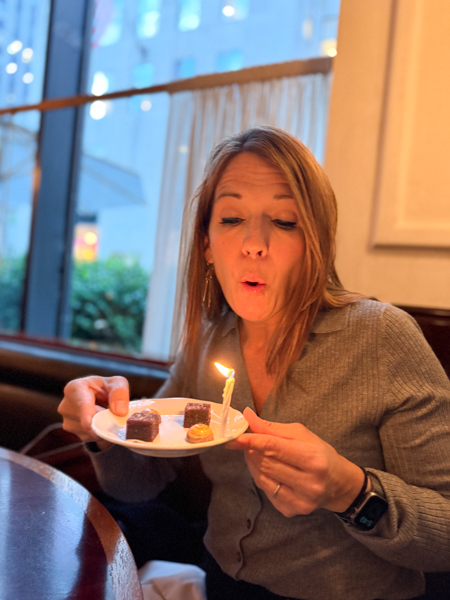 And then a birthday toast to me from my best girl. 44 was off to a smashing start – it had been a very very good day.