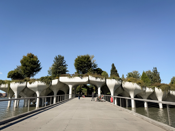 Eventually, we landed at Little Island, a park in the Hudson River constructed on a series of tulip-shaped pillars. I had seen the architectural splash this place made on social media when it opened a few years ago and was eager to see it in person. Would it be as cool as Instagram had led me to believe?