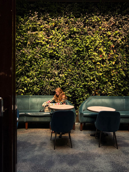 We grabbed coffee and croissants at Felix Roasting Co and Juliette read her book in the cafe’s small winter garden while I gawked over the velvet banquettes and the embossed napkins.