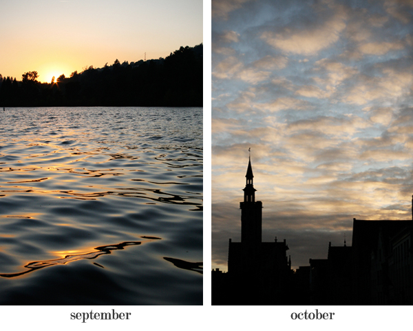 I put together our 2012 calendar today, which involved sifting through the past year’s photos and selecting snapshots of our favorite 2011 moments. And I know I say this every year, but dang, it’s been a good year. This has probably been our biggest travel year ever, with vacations in Florida, Chicago/Minneapolis, and Europe, and lots of little weekend getaways to places like San Francisco, Vancouver, and Portland.  We’ve shared countless meals with close friends, we’ve made special trips to connect with family, we’ve felt our hearts overflow with love, both given and received.  I’ve drawn and painted, I’ve cooked new things, I’ve enjoyed successes and new opportunities at work.  I’ve laughed a lot.  But there have also been moments when big, dark clouds overtook our happy, sunny skies – there have been times this year when we’ve felt deep, deep loss, when our hearts have broken for friends and family that are going through things we can’t fix.  There have been times when I’ve cried to God, asked him “why?” and heard nothing but silence.  And then I take my fingers out of my ears and remember His faithfulness – He reminds me of his presence time and again, in a hug from Shane, in an encouraging note from a friend, in a spectacular sunset or park full of autumn leaves.  Indeed, I have much to be thankful for.