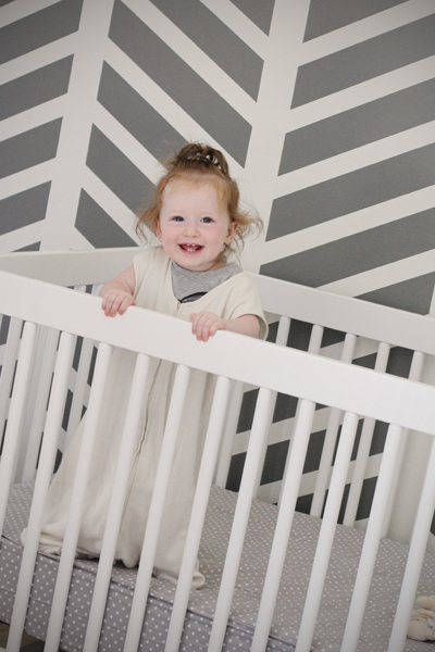 She’s pulling herself up to standing now on any available table/chair/couch/drawer. Â And she’s standing up in her crib nearly every time I go in to get her after naptime, looking very regal with her sleepsack draped around her feet. Â We shall call her Queen Jules.