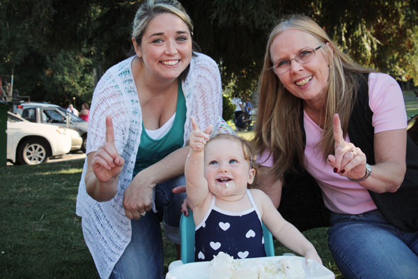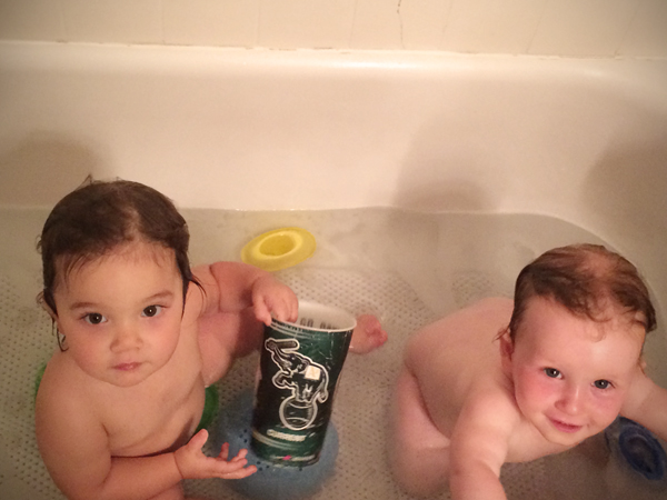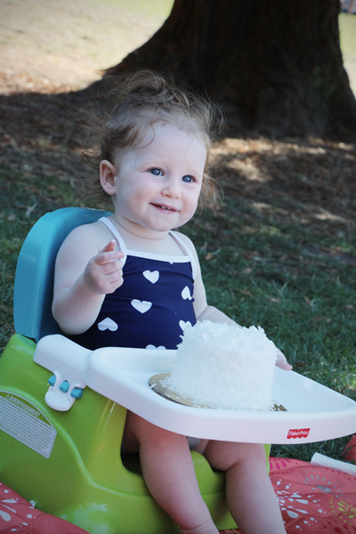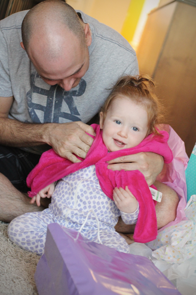 Juliette was amused by the game for the first three innings, sitting quietly on our laps and staring wide-eyed at the people and the ball field and the cotton candy vendors. Â She clapped when everyone else clapped and was only minorly alarmed when Shane threw her in the air after Gregor Blanco’s home run. Â We’re going to make a baseball fan out of this kid!