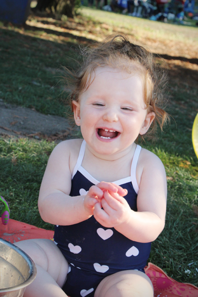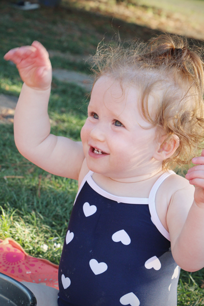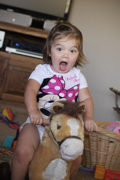 By 9:00, Jules was fading fast, so we jetted back to the room for naptime. Â She woke up feverish and a little cranky, but perked up as I let her romp around the king-sized bed – all those pillows! Â And that soft down comforter! Â I think she really felt like she was getting the shaft in her little Pack N Play.