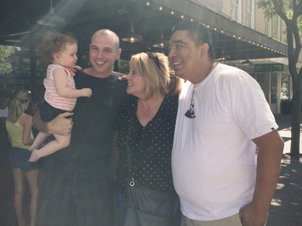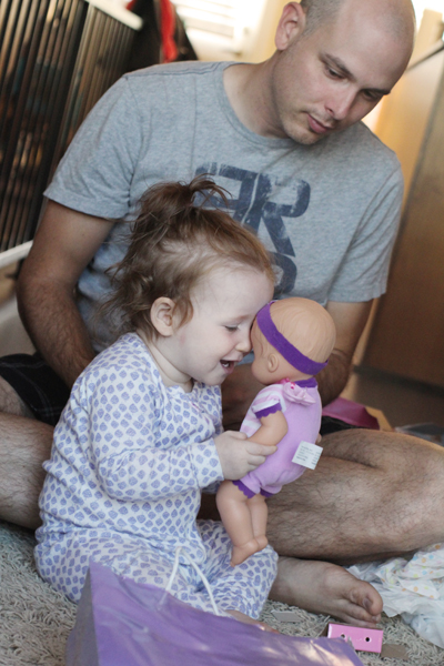 We met up with Shane in the evening to grab a few tacos for dinner and then Jules was ready to call it a night. Â Shane had a pretty packed schedule, with sessions all day and then parties “networking events” at night, Â but I appreciated him always being around to help with bedtime, to give Jules her bath and read her a bedtime story. Â Or the San Francisco Chronicle. Â Whatever works.