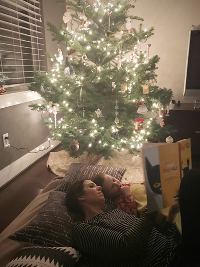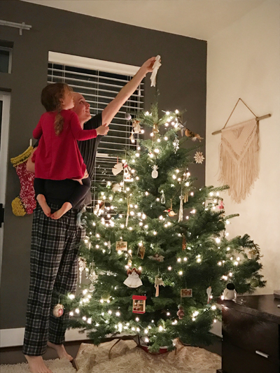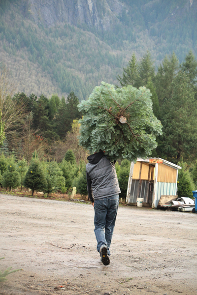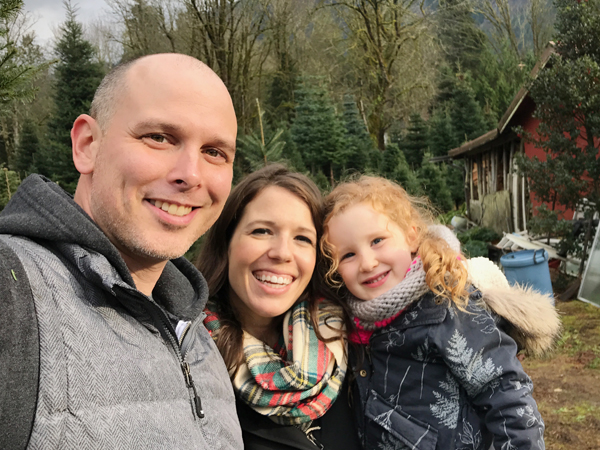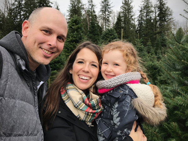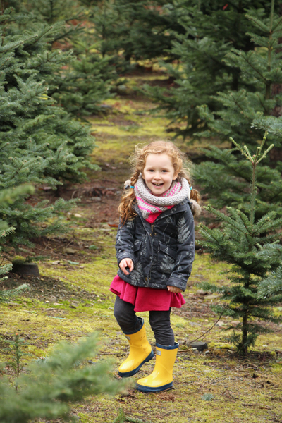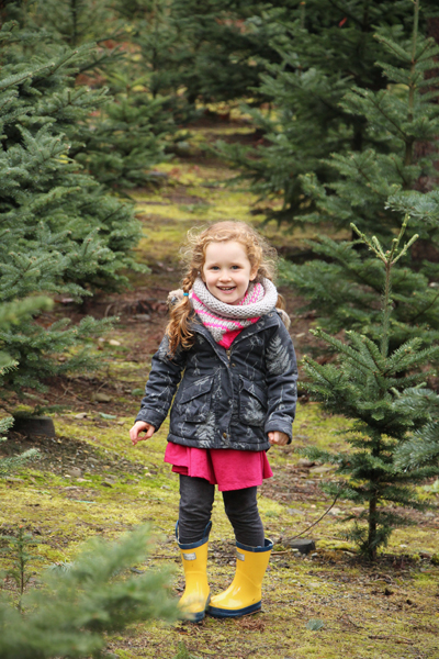 We found a perfect 7-foot Noble Fir and Shane hacked it down in true lumberjack fashion while Juliette cheered him on.