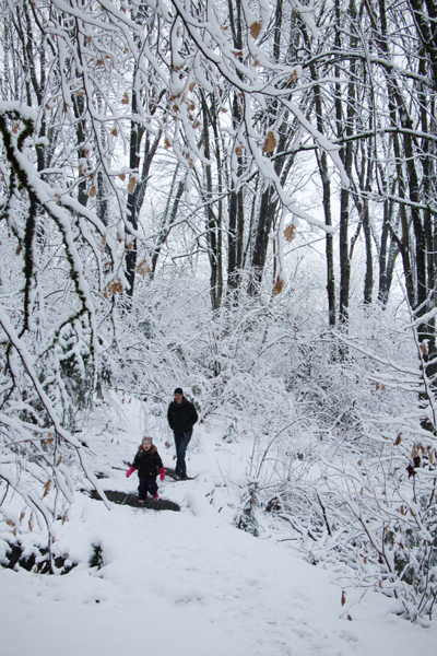 It’s been an unusually snowy winter in Seattle, and I find myself giddy with child-like “hope-school’s-cancelled” excitement each time flakes start to fall. School actually was cancelled one Monday a few weeks ago, which meant that Shane and I both stayed home from work to hang with Jules because, well, it takes two. Plus, which one of us was really willing to head into the office and miss out on this magic?!