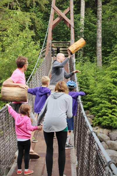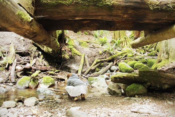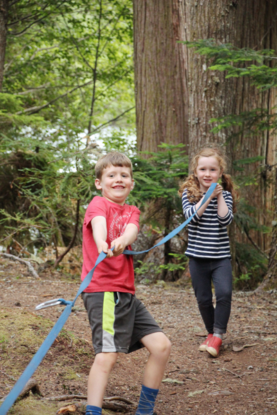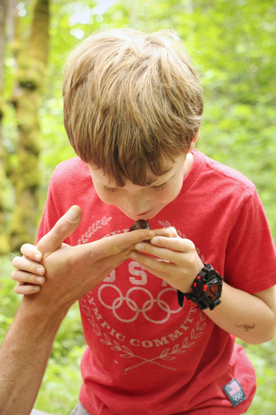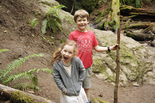 I bemoaned the burn ban in those chilly mornings hours, but Jules and Isaiah warmed themselves by their pretend campfire, assembling s’mores out of moss marshmallows and tree bark graham crackers.
