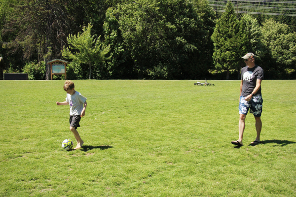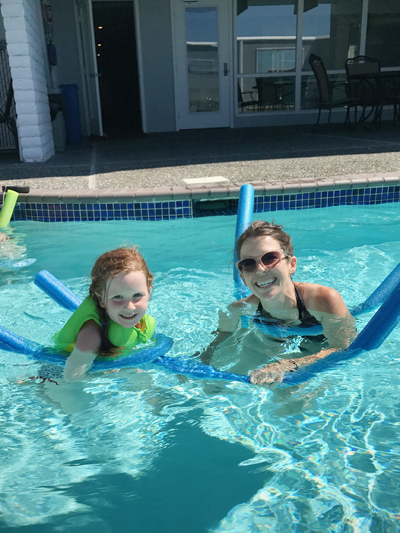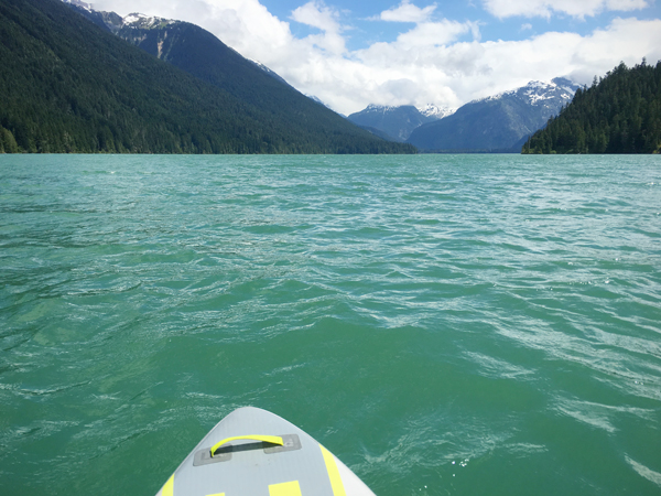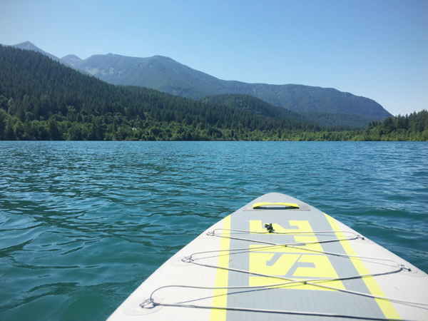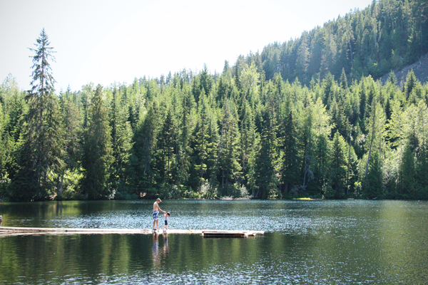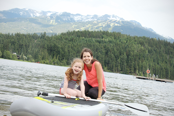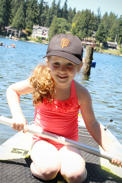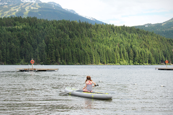 I tried to get Jules to the dock sans paddleboard, but once I dipped her waist-deep in the cold lake, she begged for mercy – we quickly waded back to the shore for frisbee and snacks.