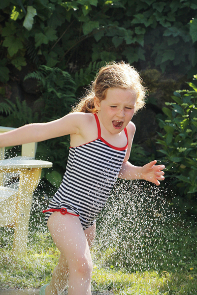 Swimsuit, sneakers, and a dirty butt – such a good look on her.