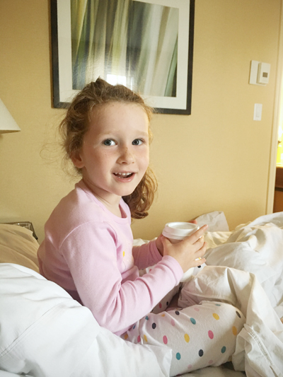 We woke up late-ish on Sunday morning and went downstairs to Starbucks for a latte and a vanilla steamer.