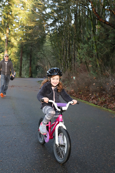 The sun came out twice last month and when it did, we were OUT, biking or walking or jogging. We spent one bright Saturday afternoon at Seward Park, brushing the dust off Juliette’s pink bike.