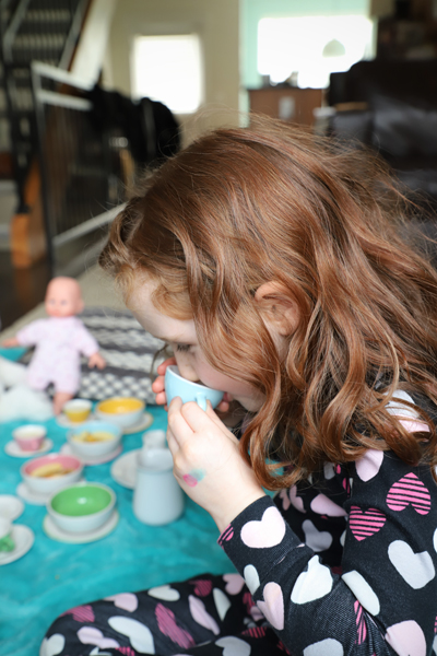 She’d hold an apple slice up to panda’s mouth and then turn her head and secretly devour it herself, desperately wanting me to believe that her stuffed animals were really eating their snacks.