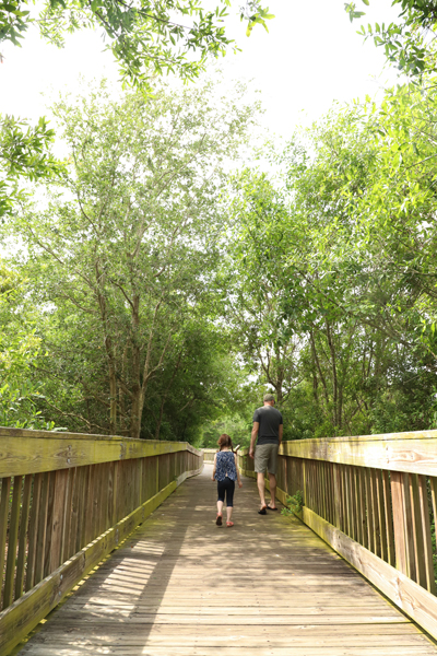 And then set out on an alligator hunt. We found what we were looking for at Taylor Park, in the form of two beady eyes peering out from the water 30 feet off-shore. Juliette gasped excitedly, but lost interest once she realized this particular alligator wasn’t going anywhere.