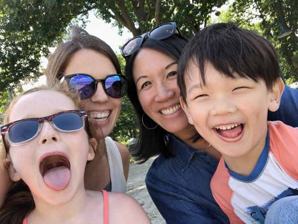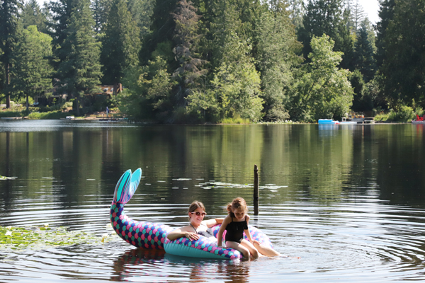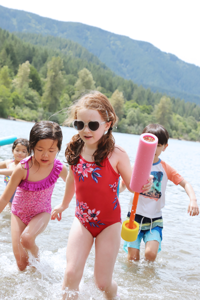 By mid-afternoon the lake was hoppin’, but Juliette navigated among the unicorns and rafts with total ease. Next year, she might be ready for her own mini paddle board!