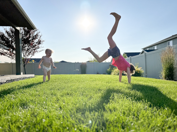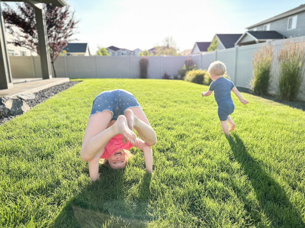 And once we’d boated and eaten, there was nothing left to do but backyard gymnastics. These slow, silly moments were the highlight of my week.