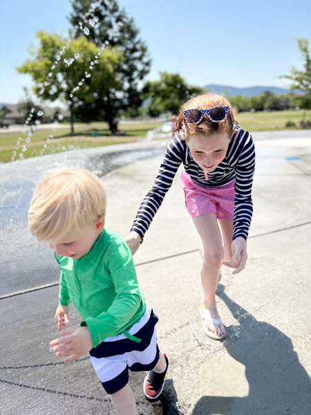 It seemed that nearly every park had a splash pad, so we took to packing a beach towel with us every where we went.