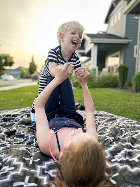 And then backyard sprinkler shenanigans with Grandma! My kids bring out such unabated joy in their grandparents.