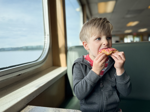 I love how my kids so eagerly lean into their ferry faves – Juliette bee-lines for the puzzle table and Isaac heads right for the deck.