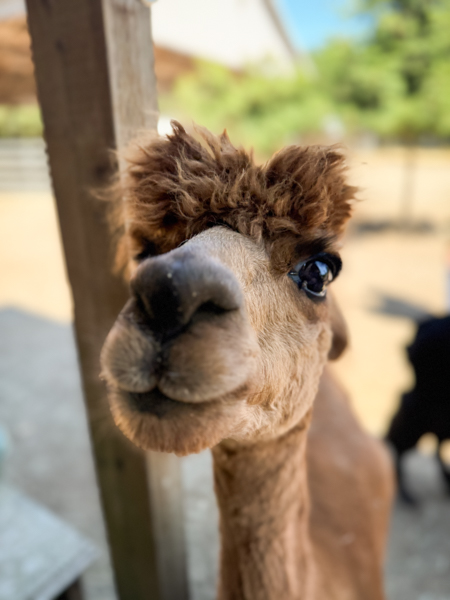 Juliette did not love the slobber factor. Put out a handful of feed and these alpacas get EXCITED.