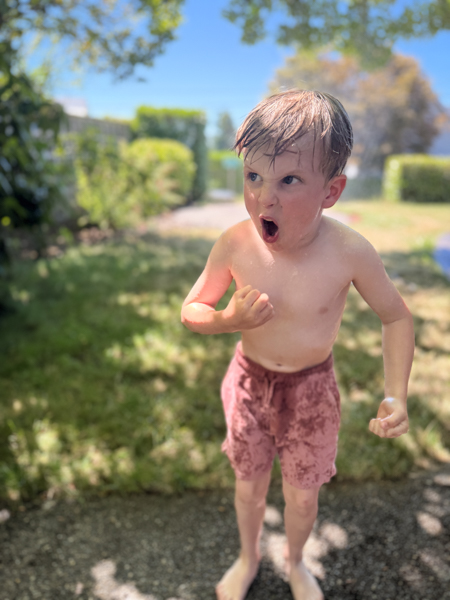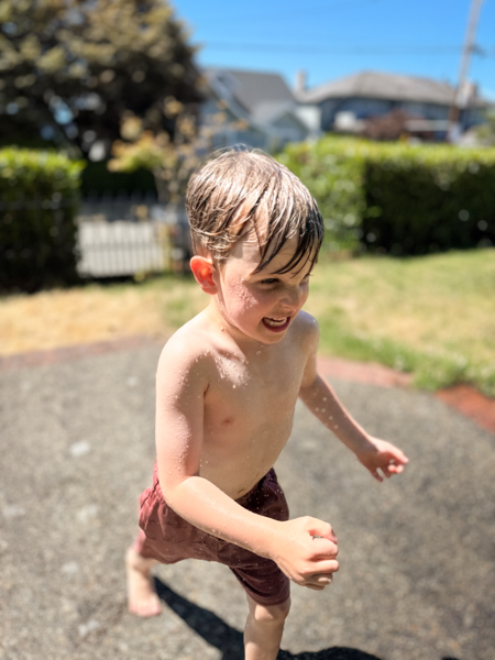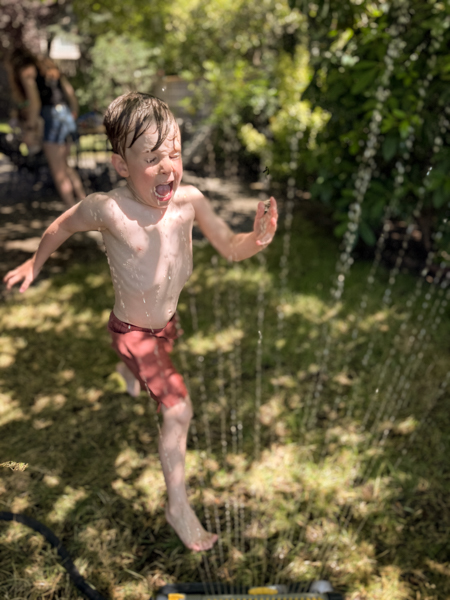 Our summer home base continues to be our backyard, for reading and water balloons and sprinklers.