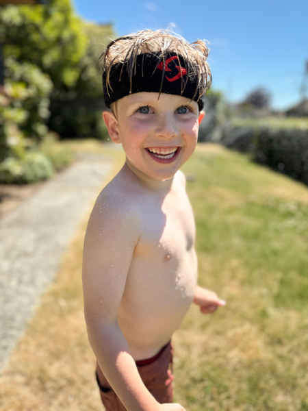 Shane thinks he looks like Johnny from the Karate Kid. I think he looks like utter delight.
