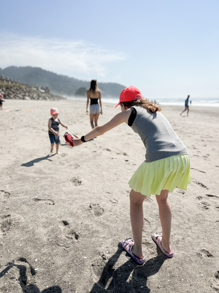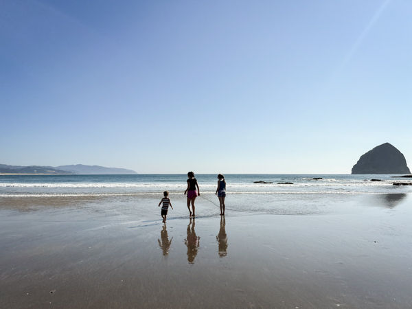 We explored the tide pools for awhile, but found we were much happier and much more sure-footed on the sand.