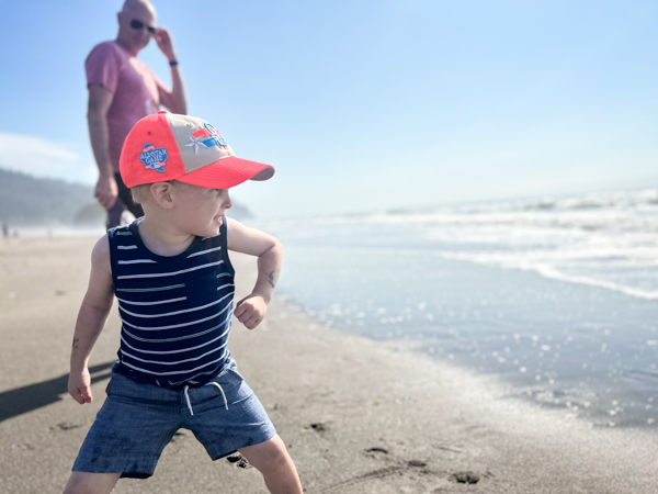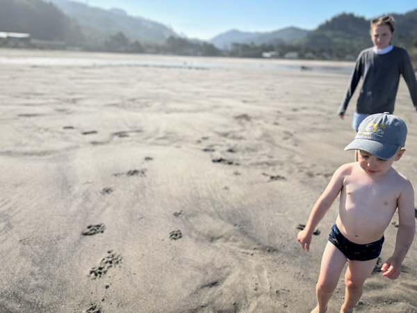 I wish I could personally thank whoever built this driftwood fort. Isaac played in here for a good 30 minutes, serving me pretend breakfast from his makeshift tabletop.