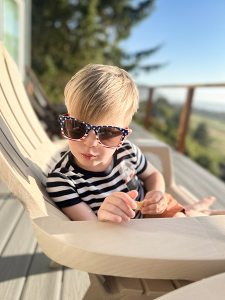 We were both pooped and got ready for bed before the sun officially dipped, but again, Isaac asked to head down the stairs on our way back from the bathroom, and again, I stuck our toothbrushes in my pocket and said “When at camp…” It was windy that evening, so I wrapped us up in the towel we were carrying and we watched the sun go down, down, down. I’m so thankful for these chances to follow his lead.