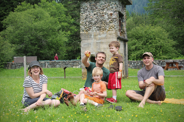 But first, a quick stop at the farmer’s market to eat donuts and Pine State Biscuit sandwiches with the Chens, who happened to be in Portland for a weekend getaway. Â The kids ran circles in the lawn, shrieking with joy as Jack tossed them in the air. Â We were glad to see Jules getting her wiggles out, as we had another four hours in the car ahead of us.