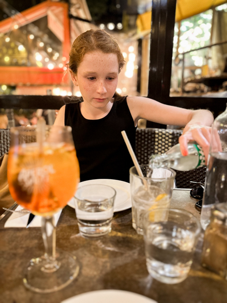 When she poured herself some water in a wine glass, I wondered…am I sure this kid is ten? Did I miss a couple of years somewhere along the line?!