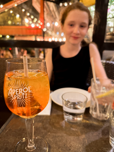 Back on Rue de Rivoli we did a little shopping (given the 80-degree temps, Juliette wanted a pair of shorts!) and then we grabbed a terrace meal at La Cooperative. These 5pm Cokes were clutch in seeing us through to bedtime.
