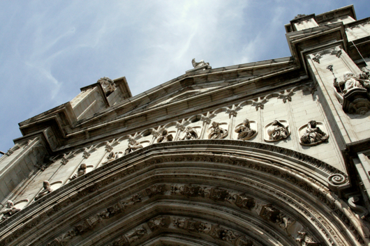We were up before dawn yesterday to catch our flight to Madrid. After an insane cab ride to the airport (our driver sang to us in Portuguese while driving so fast that his speedometer needle had no place else to go), a short plane ride via RyanAir, and about an hour in the underground maze of Madrid’s Metro, we popped up on Paseo de Delicias and arrived at our hotel. We were tired, but eager to drop off our things and begin our exploration of Spain. And so the four of us headed to the train station down the street to purchase tickets to nearby Toledo, an old, beautiful city about 30 minutes south of Madrid by train. Success was had, and by early afternoon, we were winding up the narrow cobblestone streets of Toledo on our way to the city’s cathedral, which has been termed “the best in Spain”. The cathedral was impressive, in all its intricacy and elaborateness – it seemed that every surface of its interior was covered in fine carvings or beautiful paintings. After our healthy dose of religious finery, we spent the rest of the afternoon wandering around the town, just soaking in all that Toledo had to offer. Sampled some local marzipan, peeked into the El Greco museum, and spent some time just hanging out on a bench in the town’s main plaza. By the end of the afternoon, I was ready to escape the crowds of tourists and find out where Spain’s locals like to hang out, but it was a very pleasant day, all in all.