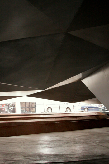 All of that art-seeing had us hungry, so we hopped across the street for a leisurely lunch (tapas, of course). The sun was shining and I reveled in the warmth of our little table on the plaza. Aaaahhh… On the way to our next stop after lunch, we came across the CaixaForum – a totally amazing building recently completed by Herzog and deMeuron. I was instantly taken with the outside of the building, and the super-cool green wall growing next to it. The interior was impressive as well, with its innovative use of materials and simple, sleek forms.