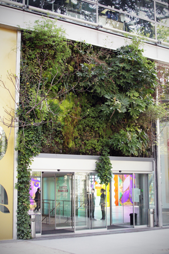 Next stop was the Fondation Cartier, a large art exhibition space and one of my favorite contemporary buildings in Paris. I appreciate this place more and more each time I visit it – so simple, but so well-planned and special. I noticed for the first time the amazing green wall that is growing over the entrance – nice!