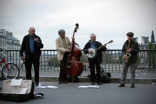 We spent the rest of the evening strolling through the Marais and along the Seine, stopping on Ile de la Cite to listen to the same sidewalk jazz band that we’d come across the Friday before. We ended the night with a small carafe of wine from Les Philosophes and went to bed that night so thankful that we’d have one more day to soak in the richness of Paris.